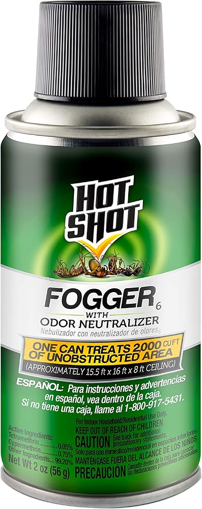 Between the carpool and the couch cushions, you're the CEO of the home front. Take care of your family – and take care of business, no matter where household pests rear their ugly heads. Show bugs who's boss with Hot Shot insecticides. They're your weapon of choice, giving you the clear advantage within your walls and at the bank. Save the day.Hot Shot Fogger6 With Odor Neutralizer creates a fine, penetrating mist that reaches deep into cracks and crevices to flush out and kill hidden bugs on contact. This product kills ants (except fire ants), black carpet beetles, brown dog ticks, crickets, earwigs, firebrats, fleas, flies, gnats, houseflies, mosquitoes, palmetto bugs, pillbugs, rice weevils, roaches, saw toothed grain beetles, silverfish, small flying moths, spiders and waterbugs. Does not control bed bugs. When used as directed, the clear, non-staining formula will not harm drapes, upholstery, fabrics, carpeting, bedspreads, floor tiles, wood floors, linens, furniture, walls, clothing, ceilings, shades or blinds.Hot Shot Fogger6 With Odor Neutralizer kills both flying and crawling insects on contact and keeps killing for up to 2 months without leaving a wet residue. One can of this product treats up to 2,000 cubic feet of unobstructed space. Read and follow all label directions before using this product. When creepy bugs attempt to pass, save the day with Hot Shot insecticides.