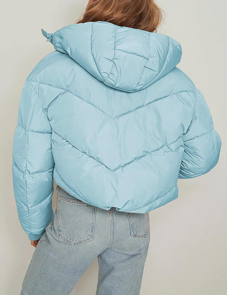 Cute removable hood with drawstring, protect your body from the cold and wind, cropped puffer jacket women