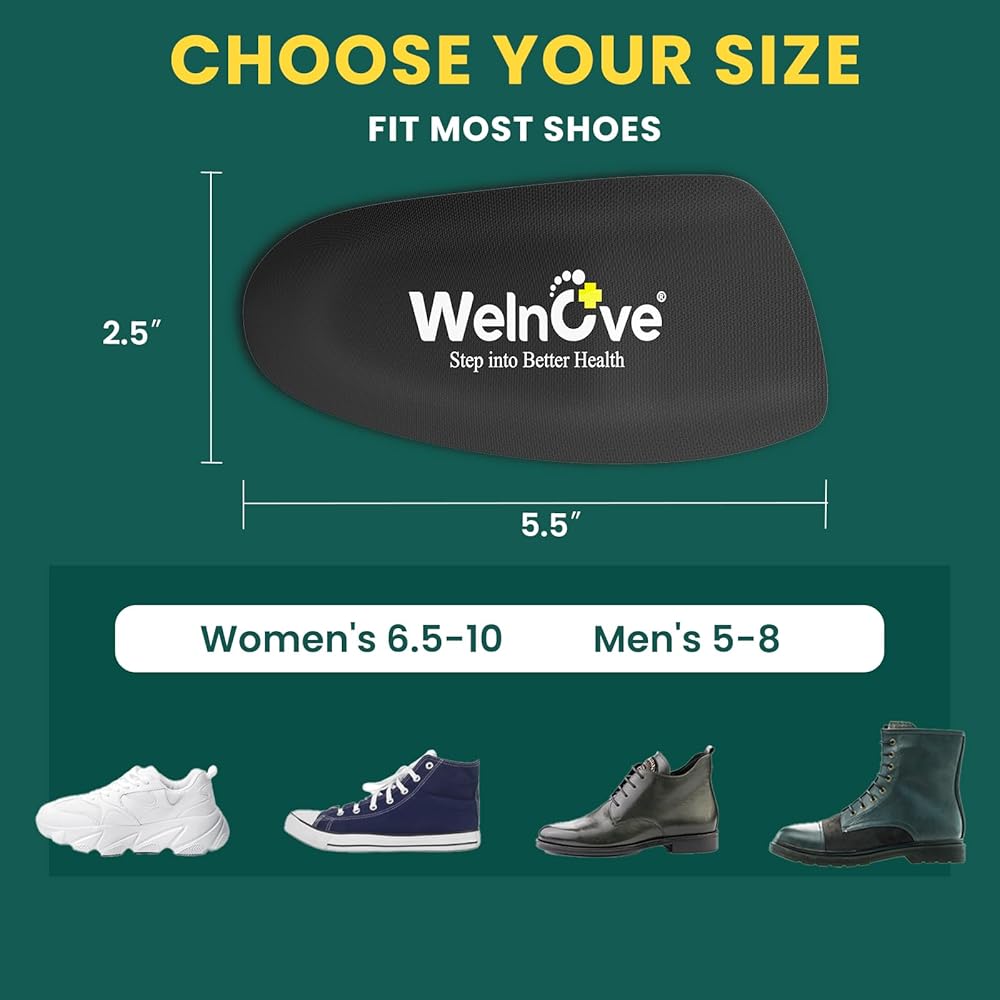 MAX COMFORT - Experience ultimate comfort all day long with Welnove's heel cushion inserts, featuring a unique design of soft gel and premium poron foam for unparalleled cushioning and support for your heel and arch. Our therapeutic acupressure helps gradually alleviate pain in a natural way, making Welnove the perfect choice for foot pain relief.