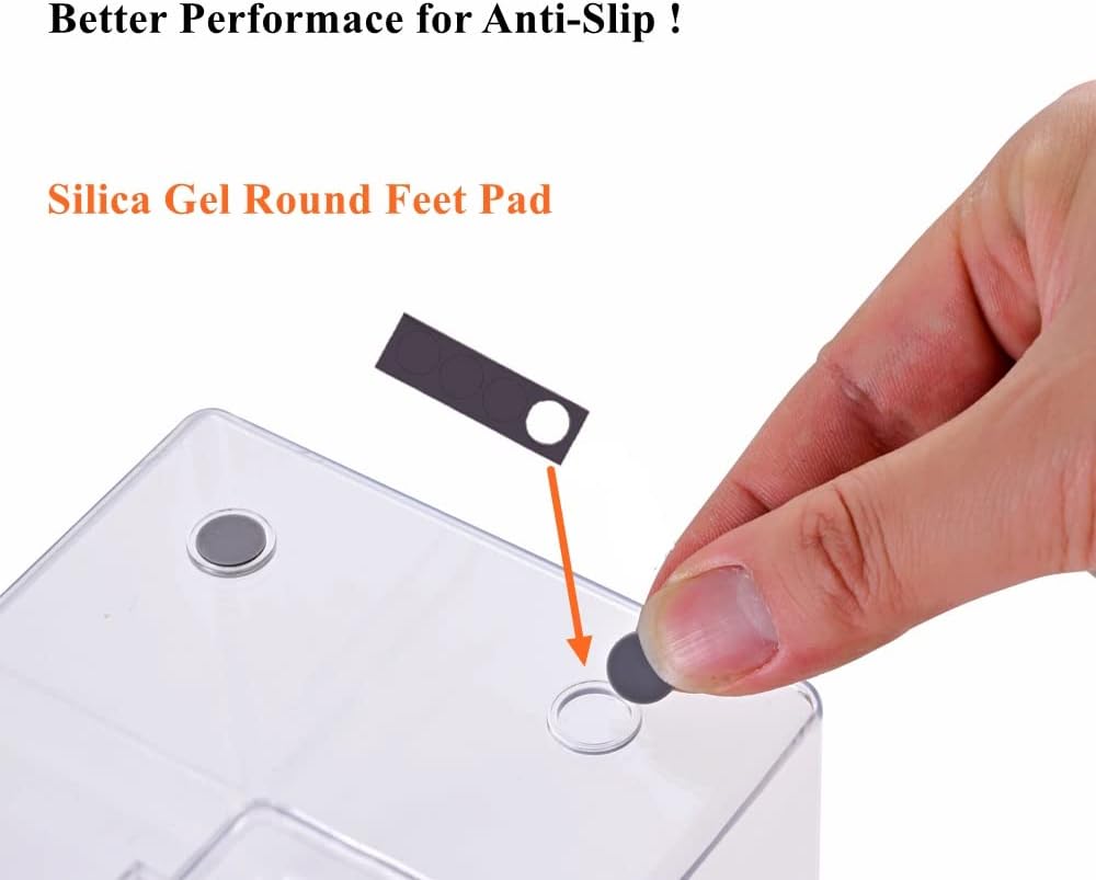 Features the raised feet can avoid scratching when moving. Thanks for the silica gel material feet pad, which has better performance on anti-slip. Please note: the non-slip feet pad is separated, just stick it on the bottom by yourself
