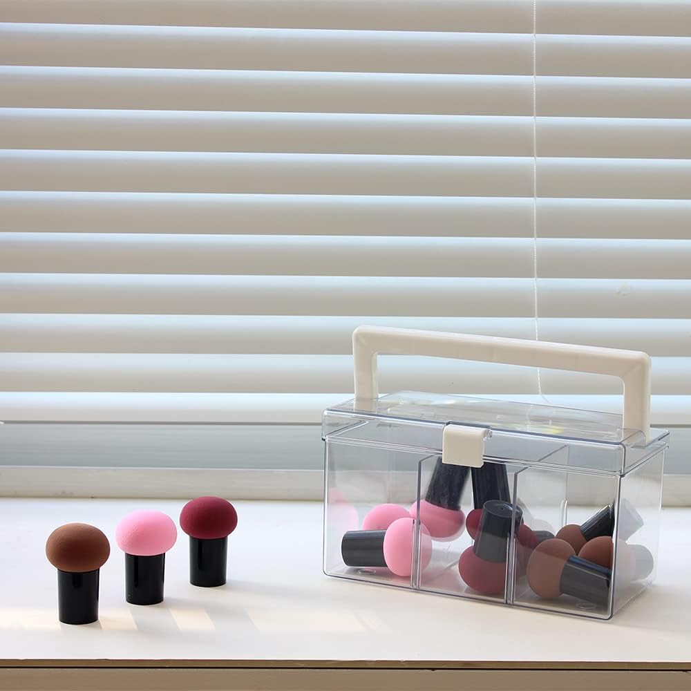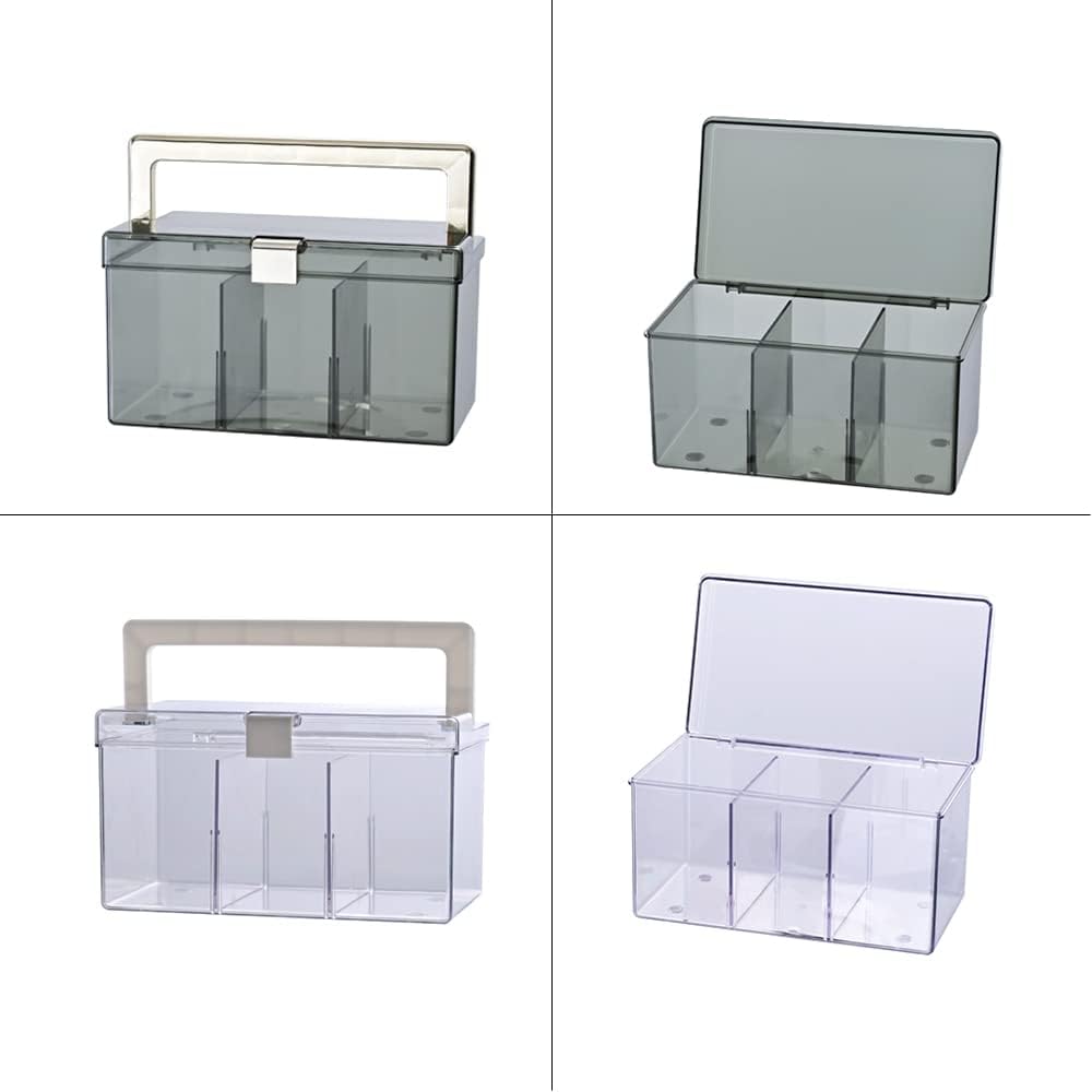 BangQiao Clear Small Plastic Storage Box with Handle, Hinged Lid and 3 Adjustable Compartments, Portable Organizer Case for Sewing, Stationery, Chalk, Art&Craft Supplies, Makeup, First Aid Kit