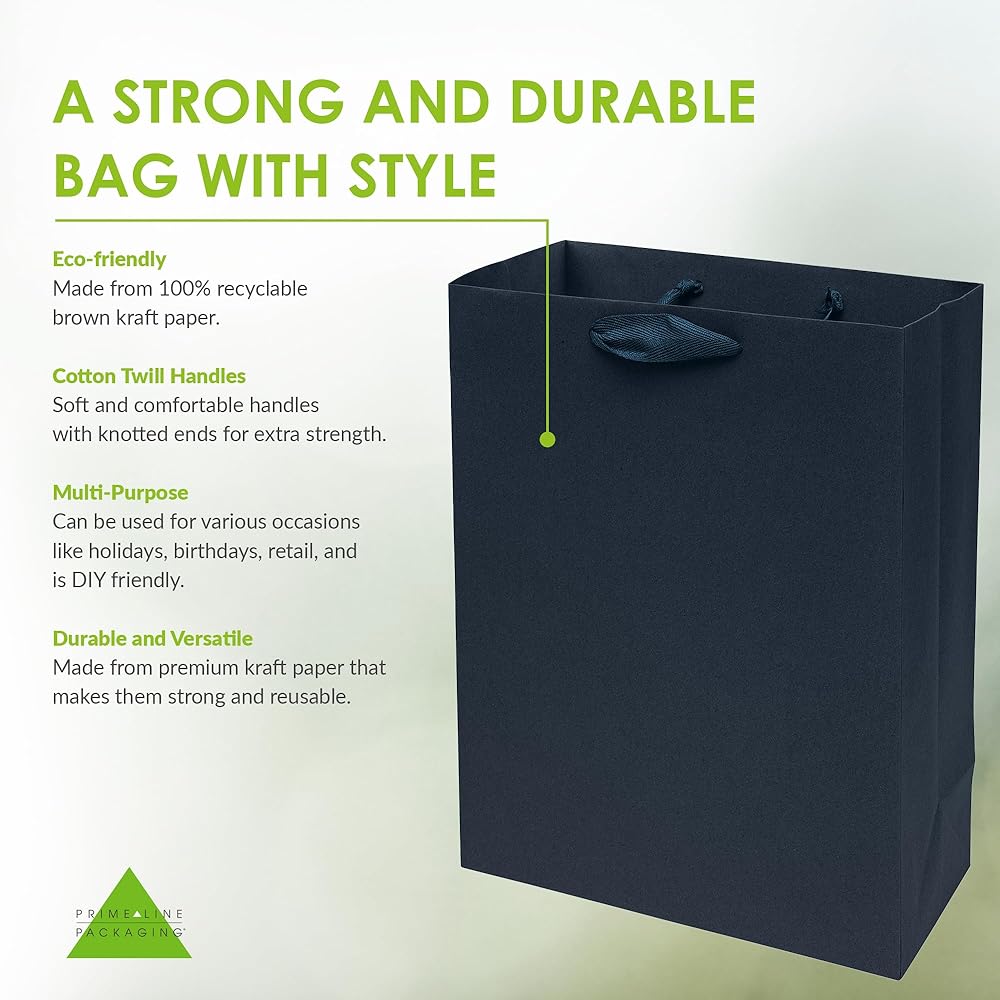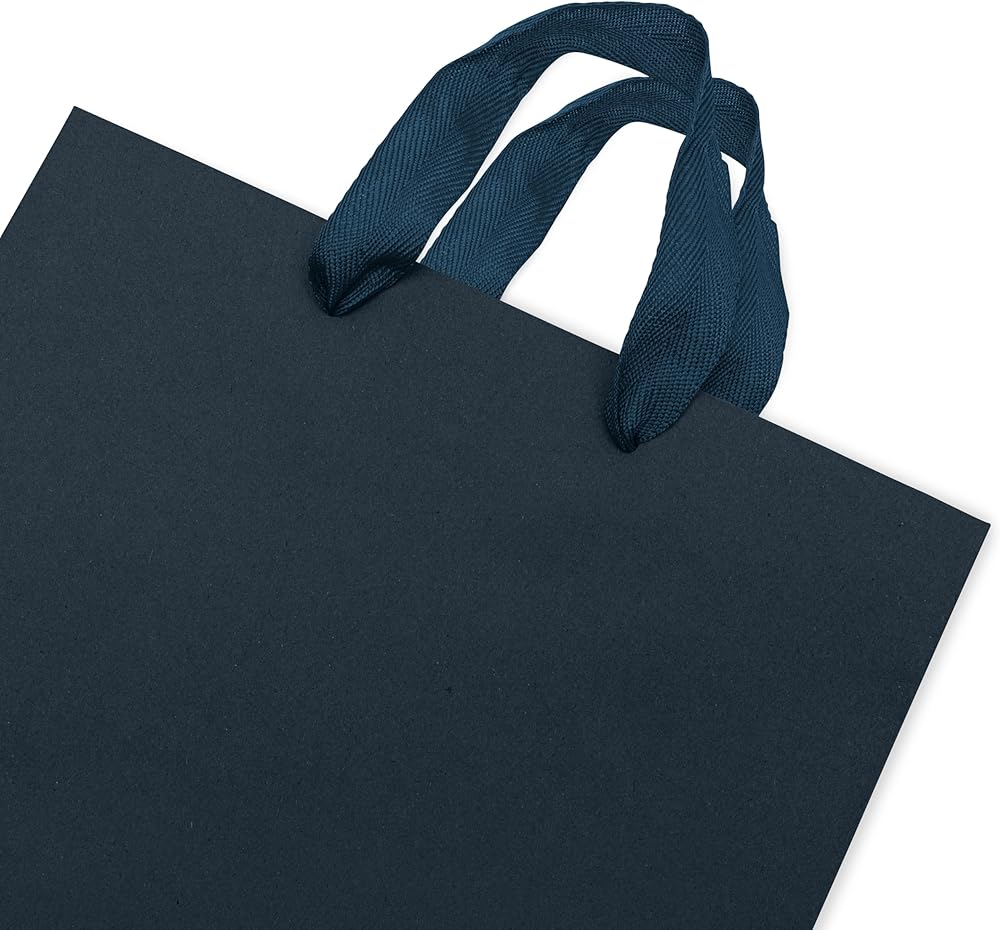 • CONSTRUCTION – Prime Line Packaging's designer twill handle bags are made from recyclable 100 GSM navy blue kraft paper with a 350 GSM cardstock reinforced bottom to ensure durability. Each bag has 1” wide, matching blue cotton twill handles reinforced with 350 GSM cardstock to make each bag a luxurious alternative to traditional paper twist handled bags