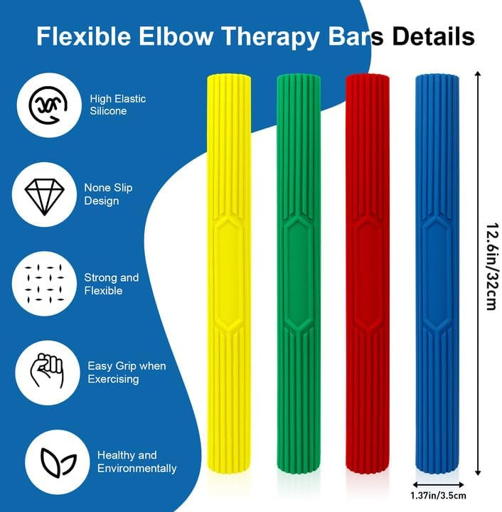 4Pack Resistance Bar for Physical Therapy, Tennis Elbow Therapy Bar, Flexible Elbow Therapy Bars, Relieve Tendonitis Pain and Improve Grip Strength for Injury Recovery
