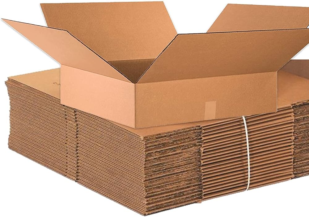 BOX USA 24x24x6 Flat Corrugated Boxes, Flat, 24L x 24W x 6H, Pack of 10 | Shipping, Packaging, Moving, Storage Box for Home or Business, Strong Wholesale Bulk Boxes