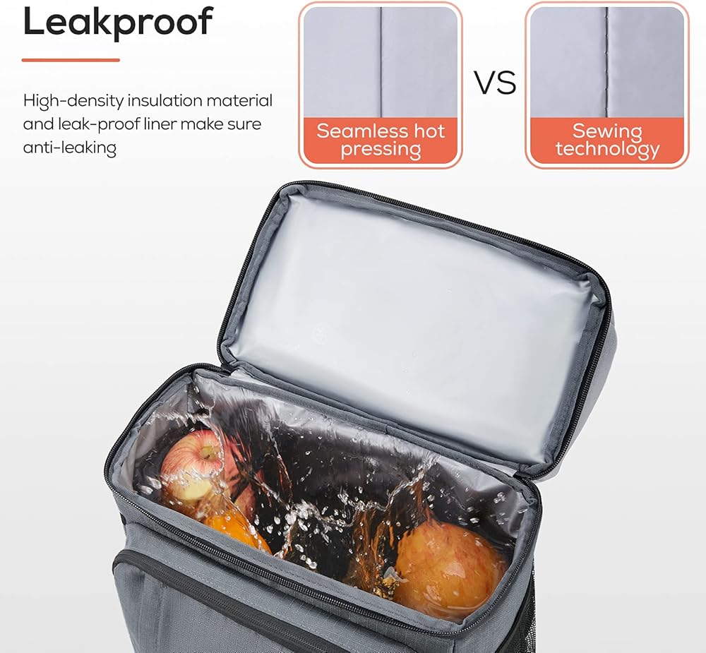 The leak-proof PEVA liner and the inner insulation thicken foam work together to make sure the backpack cooler insulated leak proof (use with freeze packs).