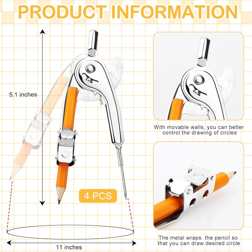 The math compass for geometry features a smooth-action adjustment mechanism that allows for easy selection of the desired radius, ensuring precision and accuracy every time. The pencil holder is compatible with most standard pencils and provides a comfortable grip for extended use
