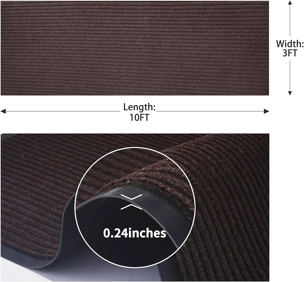 【Easy to Cut and Clean】The Striped Doormat size: 3'x10, thickness 7mm.Can be cut to any size with scissors suit for all kinds of corner or shape as you want ,without any pieces loose.Easily vacuum, broom, shake off, or rinse with water to remove buildup. For heavier dirt or deeper cleaning, use a hose and gentle soap to rinse the woven fibers,and hang outside will dry more quickly.