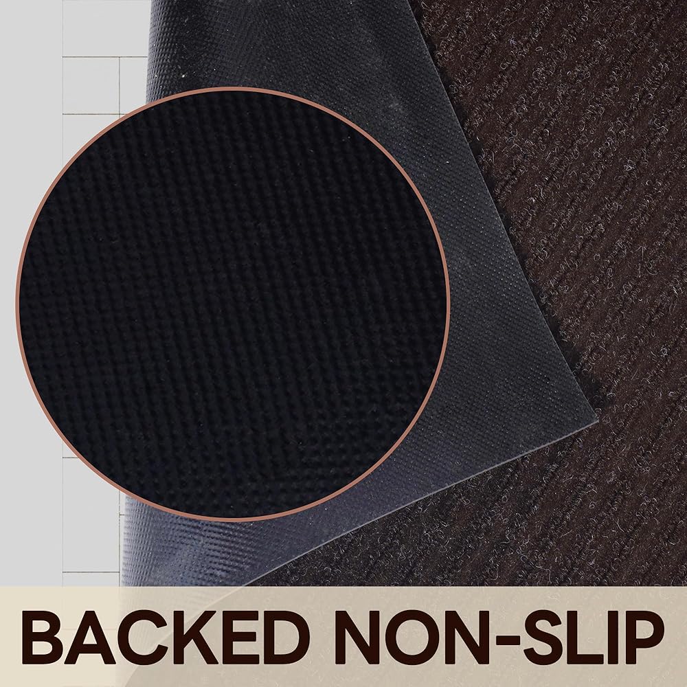 【Non-Slip&Durable Rubber Backing 】The slip skid entrance mat has rubber edge and backing, which means it will sit completely. flat on the floor and will not turn up at the corners, or move on any hard surface, keeps the mat in place.