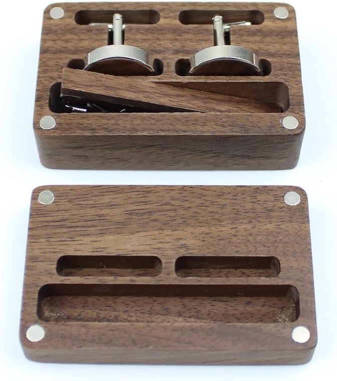 - [ Package Contents ] : One pair of wooden cufflinks and one tie bar with organizer box