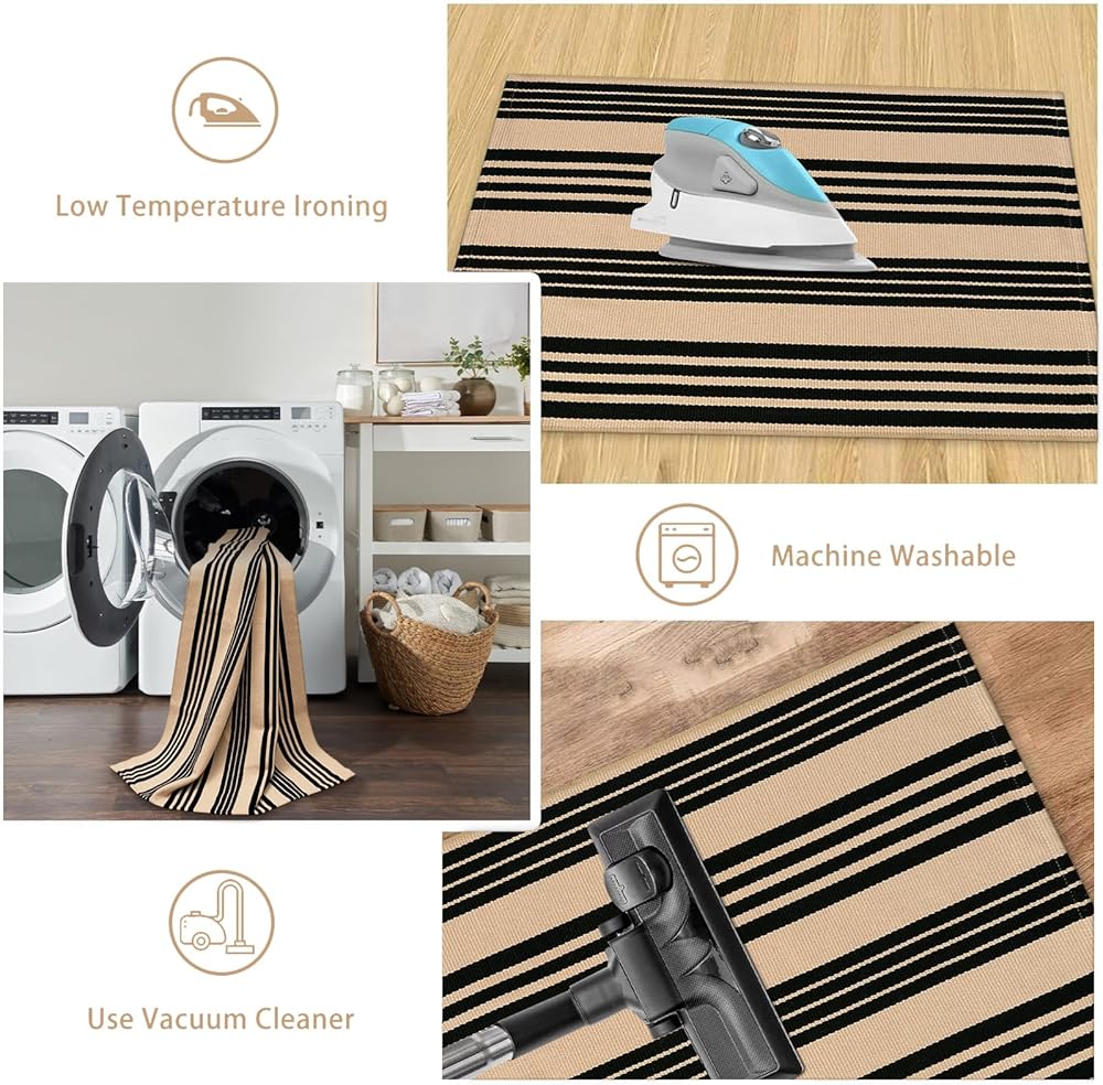 [Non-Slip Rug Pad Required] The reversible cotton rug is lightweight and has no rubber backing. To prevent the rug from shifting when walking on it, we recommend pairing it with a rug pad