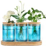 Easy Planting: The glass plant vase with cork stopper, which helps prevent water vapor from evaporating.Our bamboo holder also has a higher edge to better protect the glass.Tabletop planter terrarium don't need to install and easy to clean and change water. It is suitable for various plants, like pothos, African violets, lucky bamboo, spider plant, ivy, herb and you can DIY different plant collocations.