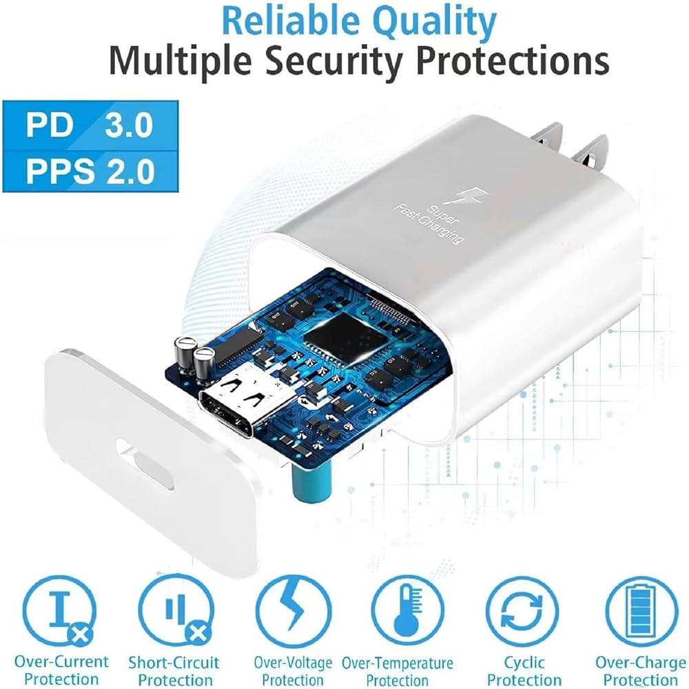 ⚡【Universal USB-C Wide Compatibility】45W USB-C Super Fast Charging Block with 6FT USB-C to USB-C Charger Cable Compatible for Galaxy S24 Ultra/S24/S24+,S23 Ultra/S23/S23 FE/S23+,S22 Ultra/S22/S22+,S21 Ultra/S21/S21 FE/S21+,S20 Ultra/S20/S20 FE/S20+,Note 20/Note 20 Ultra,Note 10/Note 10+,S10/S10+/S10e,S9/S9+,S8/S8+,Note 9,Note 8,Galaxy A13/A14/A54/A53/A52/A51/A50,Galaxy Z Flip 5/Z Fold 5,Z Flip 4/Z Fold 4,Z Flip 3/Z Fold 3,Z Flip 2/Z Fold 2,W24/W24 Flip,W23/W23 Flip,W22,W21,W20,Galaxy Tab A7/A8,Galaxy Tab S9/S8/S7/S6,Compatible for Google Pixel 8,Pixel 7,Pixel 6,Pixel 5,Pixel 4,Pixel 2,Pixel 2,LG G8,,LG G7,LG G6,LG G5 ,And More USB-C Devices.