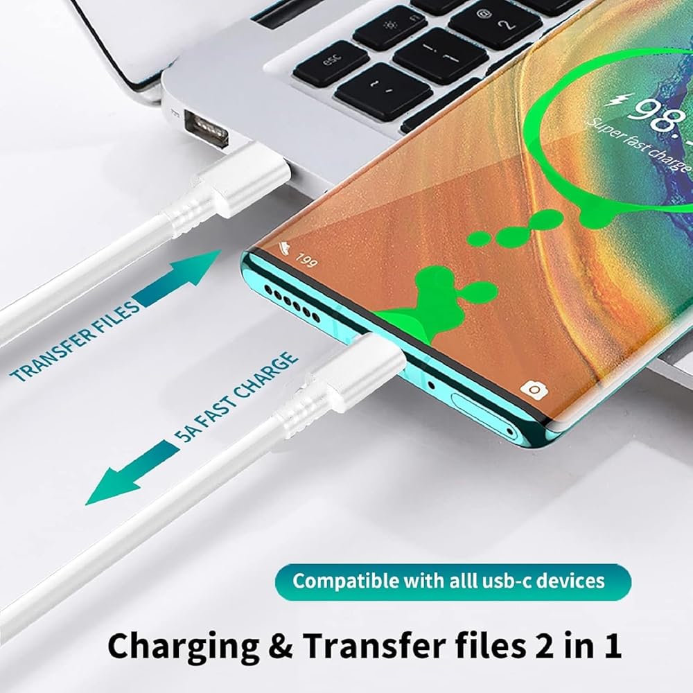 ⚡【6FT USB-C to USB-C Super Fast Charging Cable Cord】This USB-C to USB-C Super Fast Charging Cable features E-Mark Chip to realize Max 5A current, and it also functions as a high-speed data transfer cable that supports rates up to 480Mbps. 6FT length is convenient for usage while charging and syncing at home/office/travel in bed, hotel rooms, And More.
