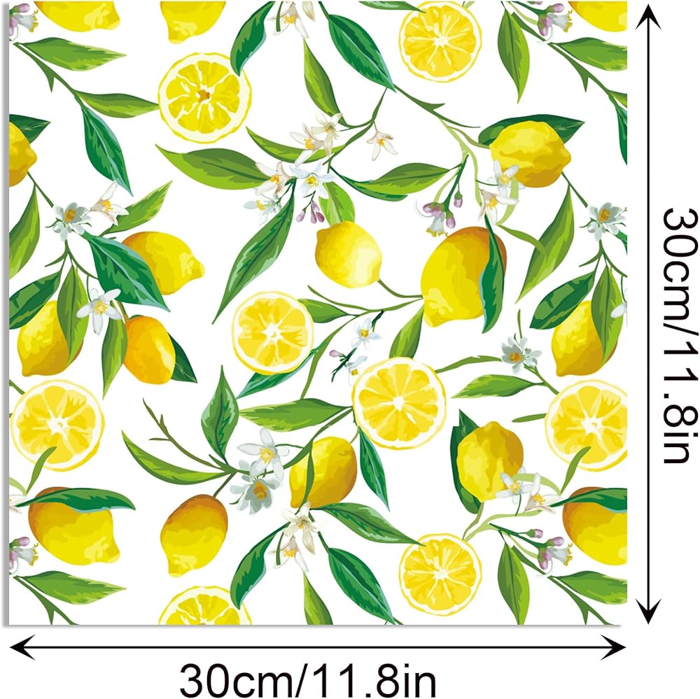 24 Sheets Lemon Scrapbook Paper Pad Double-Sided Blue Tiles Yellow Lemon Patterned Decorative Craft Paper for Card Making Photo Album Journal DIY Craft, 11.8'' x 11.8''