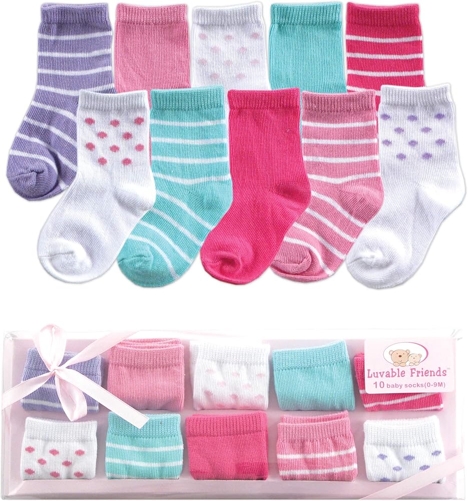 Luvable Friends socks gift set in a gift box is a great baby shower gift for new little ones. Our socks are stretchable for better fit, soft, comfortable and cozy. Out giftset comes in a clear gift box with a matching ribbon. Our socks feature adorable bows and flowers for baby girl socks giftsets.
