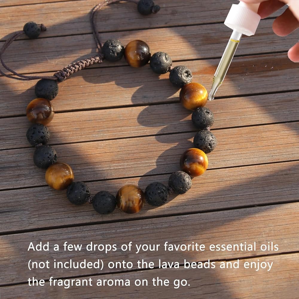 💛 Premium Beaded Bracelets: Our beaded bracelet is made of natural tiger eye beads and lava rock bead, each bead is carefully selected, ground, and polished. Our aromatherapy diffuser bracelets handmade with positive energy and love.