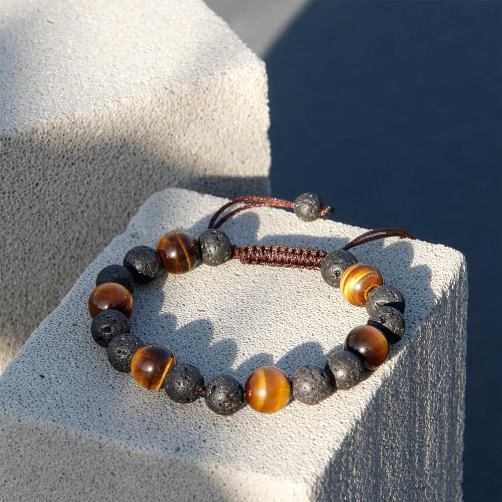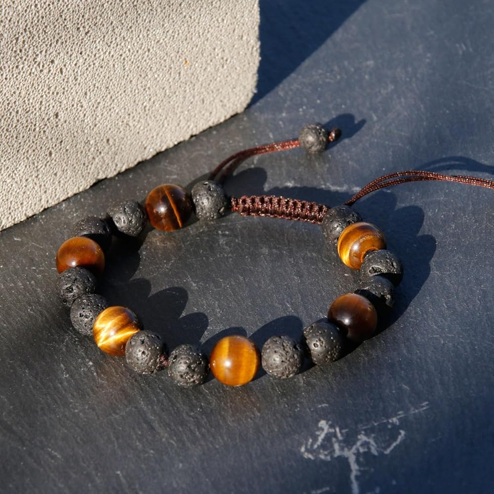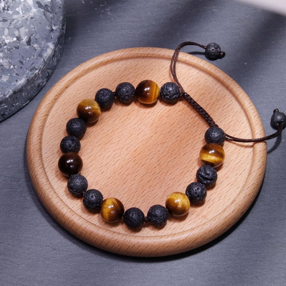 📏Adjustable Bracelets Size: 6.3" to 7.1" (16 -18cm), fit for most men's and boy's wrists. The mens tiger eye bracelet come with a sliding knot, the size can be easily adjusted by grasping both ends of the rope, it's very sturdy and not easy to break and comfortable for daily use.