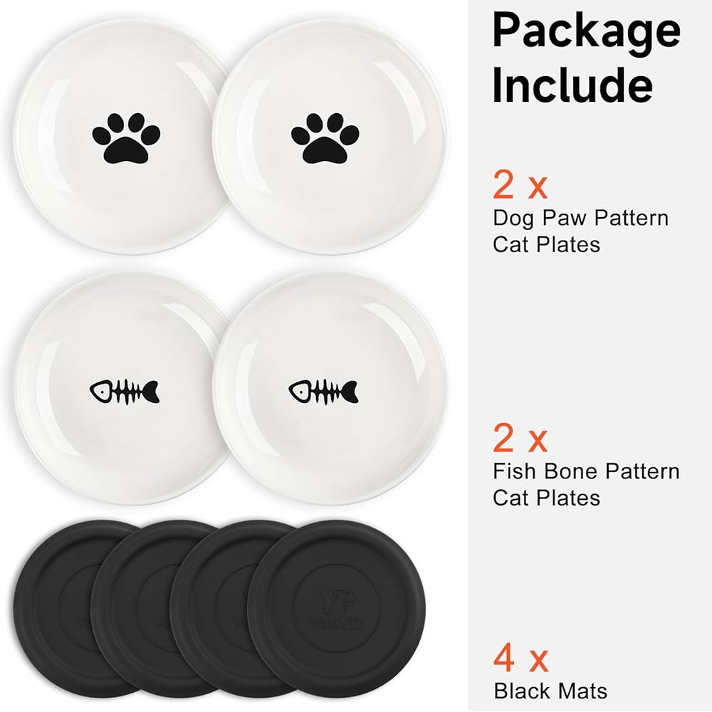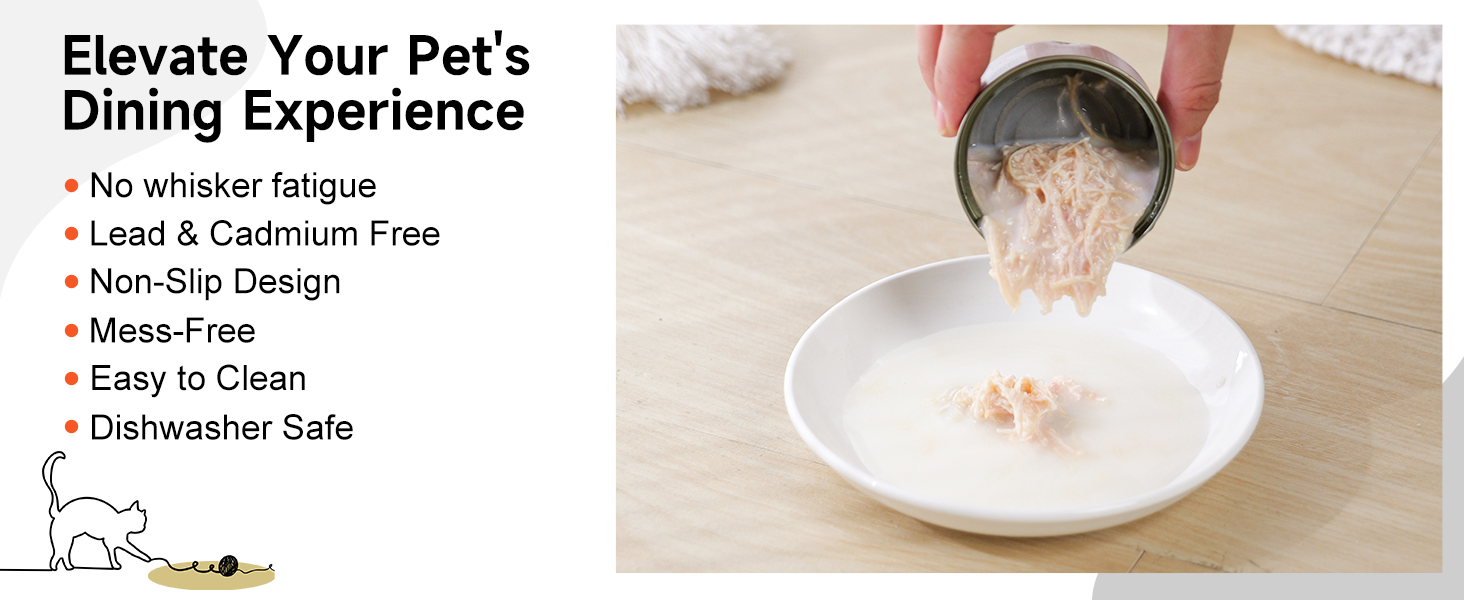 【Versatile & Easy to Clean】Our cat plates are not only suitable for cats but also for other small pets such as dogs and rabbits. The smooth surface of the ceramic material makes cleaning easy; it can be placed in the dishwasher or hand-washed with warm water for convenience. Silicone mats are recommended to be washed by hand.