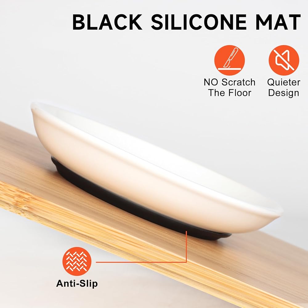 【Unique Separated Silicone Base】Different from others, our ceramic cat dish set features a separated black silicone base. This design facilitates dishwasher cleaning and prevents long-term water accumulation inside the mats, ensuring dish clean.