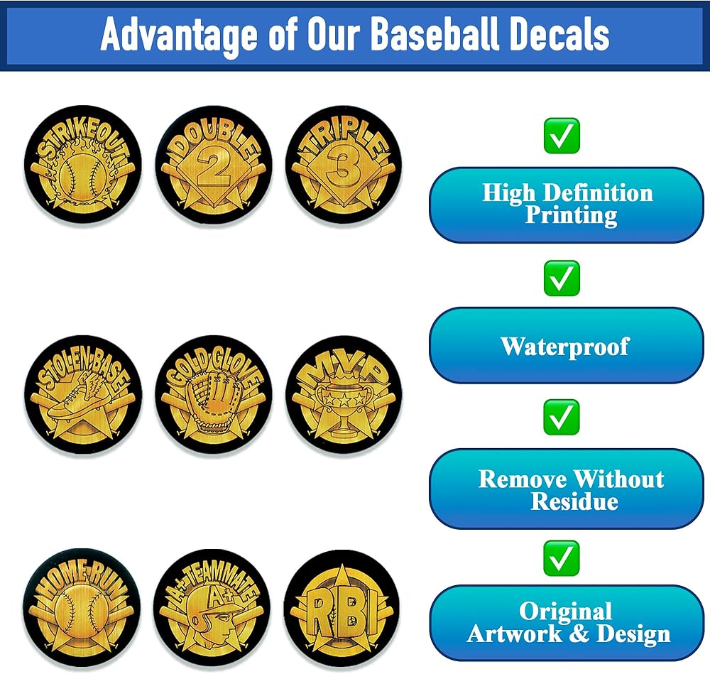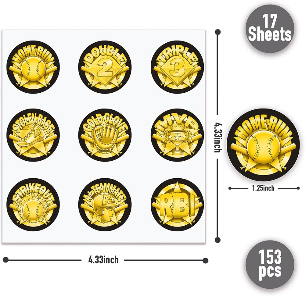 ⚾️ 1.25 INCH DIAMETER - 153 STICKERS IN EACH PACK: The nine baseball accomplishments included are: Home Run, Double, Triple, Stolen Base, Gold Glove, MVP, Pitcher Strikeout, A+ Teammate, and RBI. There is a category so that no matter the baseball talent level, there will be a baseball award sticker suitable for every teammate throughout the season. A reward type for all players. Great for Little League, Baseball Camps, CYO and Baseball Tournaments.