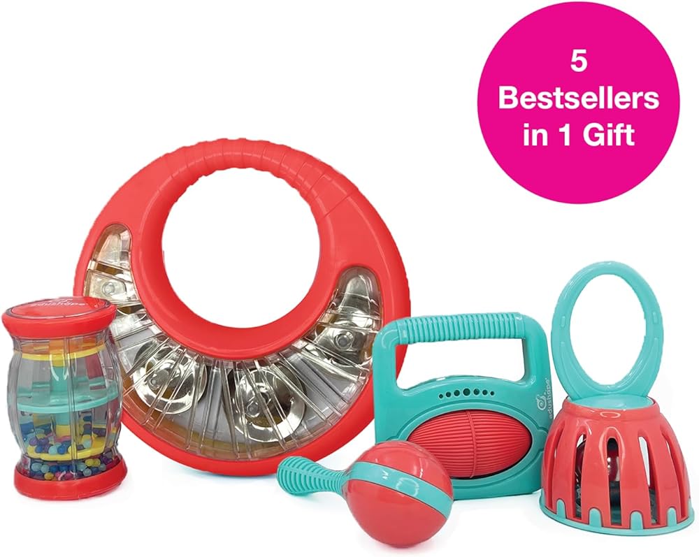 Edushape Festival Music Gift Set - Baby Musical Instruments Include Mini Rain Stick, Crackle & Roll, Bell, Tambourine, Maracas - Interactive Baby Musical Toys for Kids and Toddlers 18 Months and Up