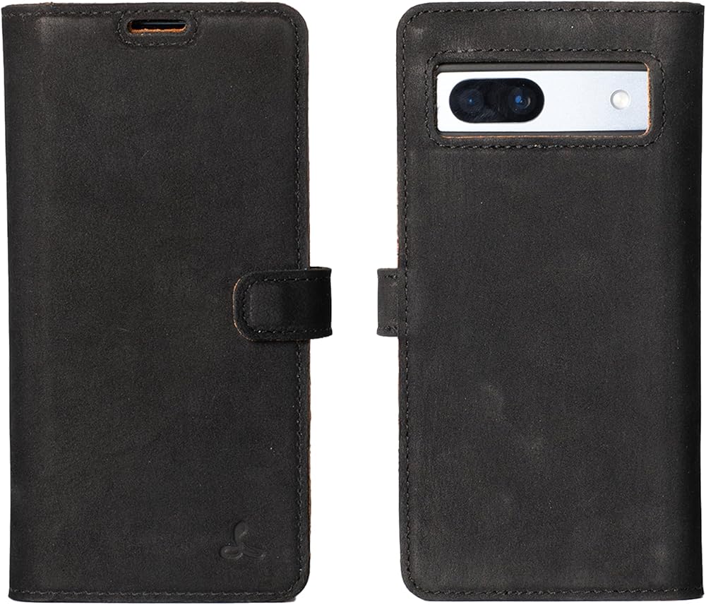 Snakehive Leather Wallet for Google Pixel 8a - Real Leather Wallet Phone Case - Genuine Leather and 3 Card Holder - Flip Folio Cover with Card Slot (Black)