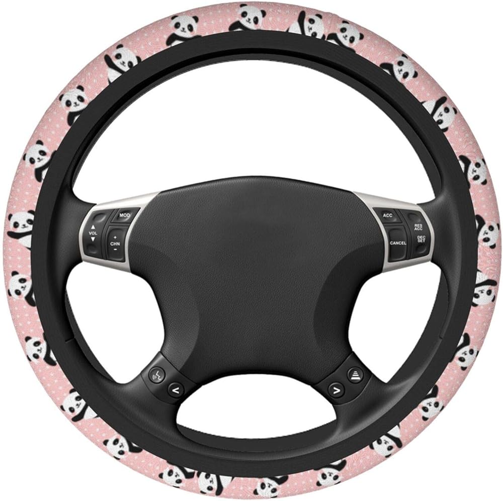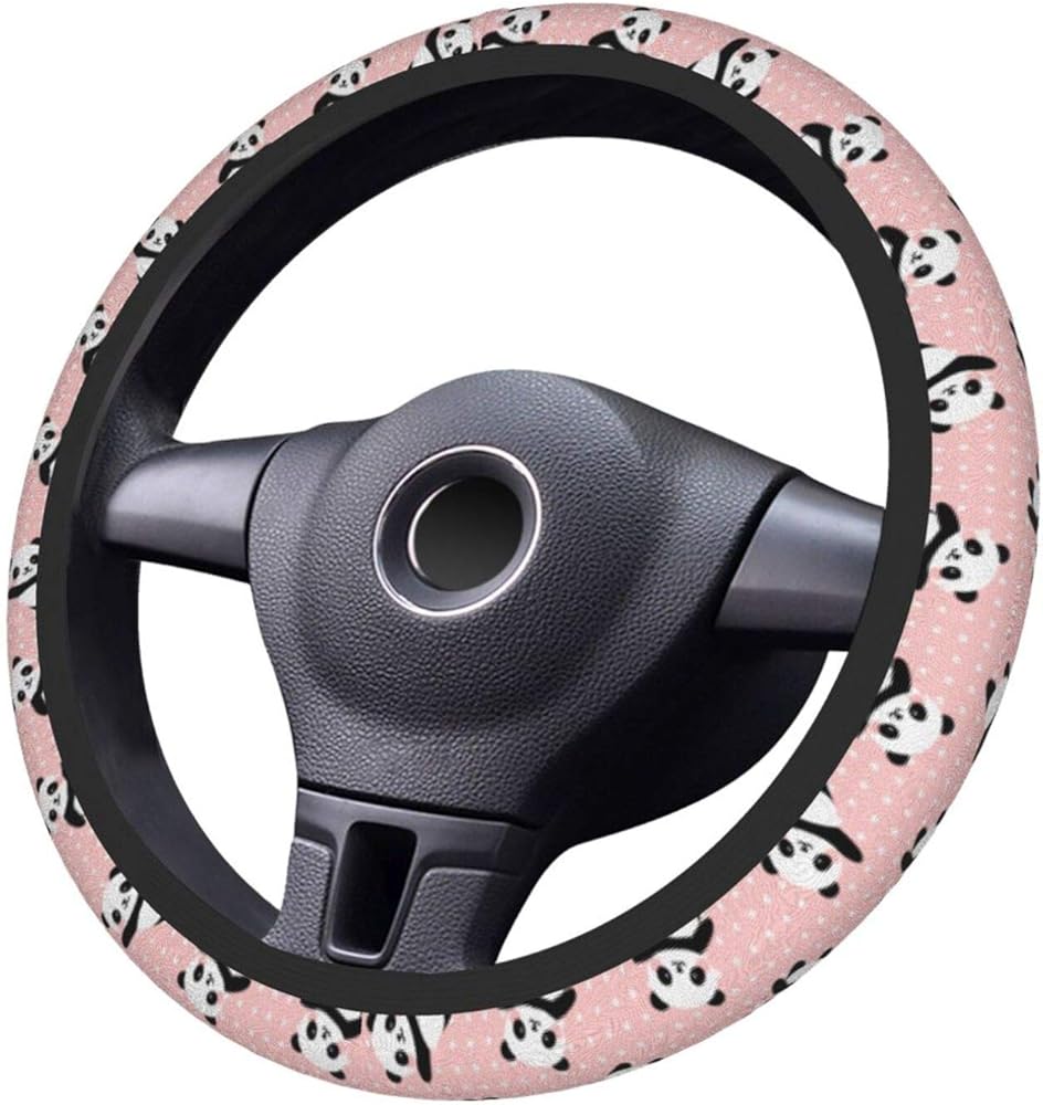 Cute Panda Polka Dot Universal 15 Inch Steering Wheel Covers Non Slip Neoprene Car Wrap Cover for Adults
