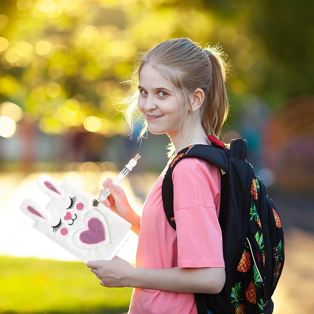 【Plush Notebook】This white plush rabbit notebook has a total of 80 pages, plush material, soft to the touch and will not shed hair. With a lock, it can give the child some privacy and let them write their little secrets.