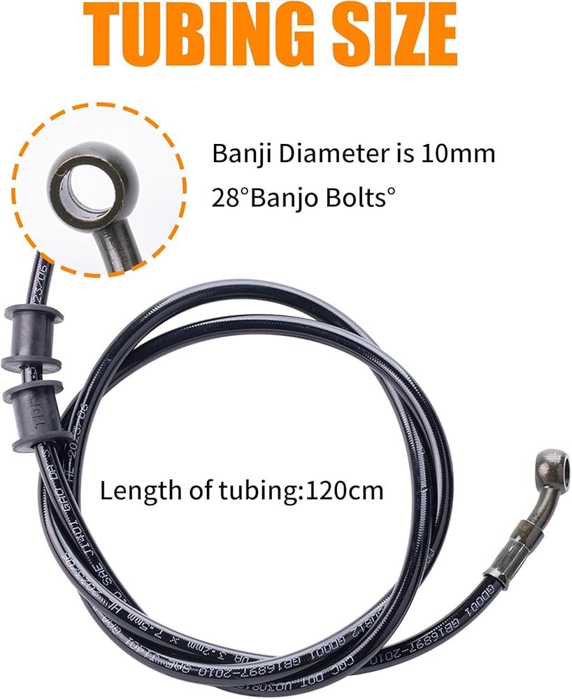 Quantity and specification: 1 x Oil Tube Line with φ10mm joint, Total length: 1.2m/3.93ft, 2 x Banjo Bolt with M10x1.25 thread;