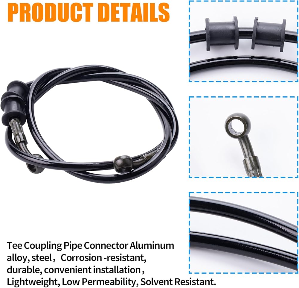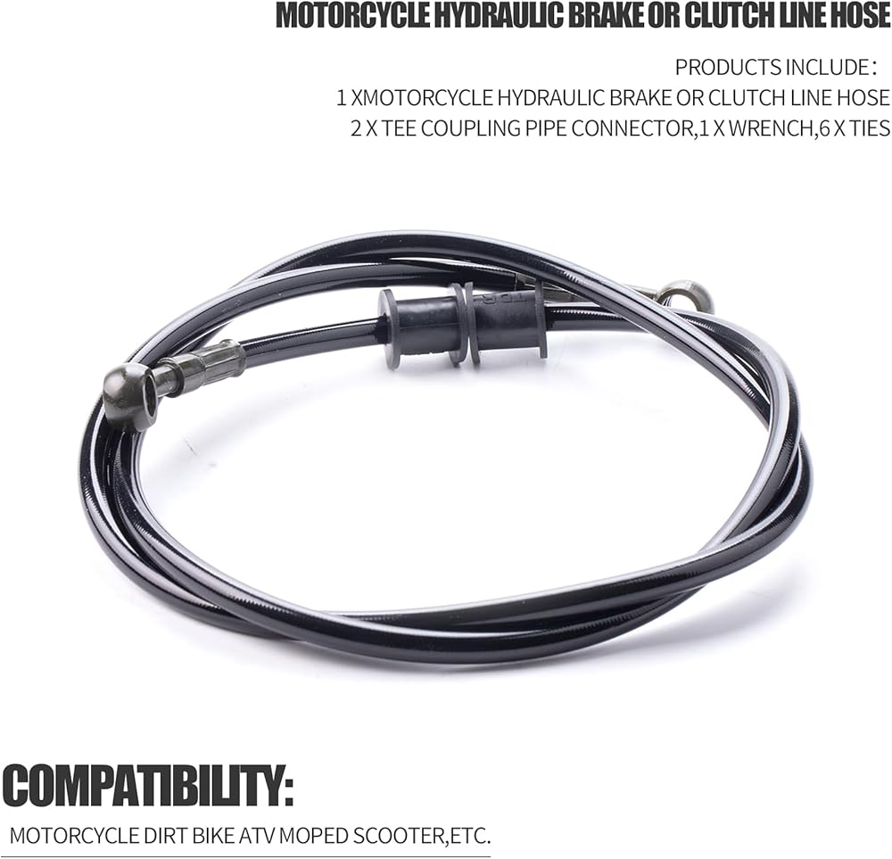 Products include:1 xMotorcycle Hydraulic Brake or Clutch Line Hose ,2 x Tee Coupling Pipe Connector,1 x wrench,6 x Ties