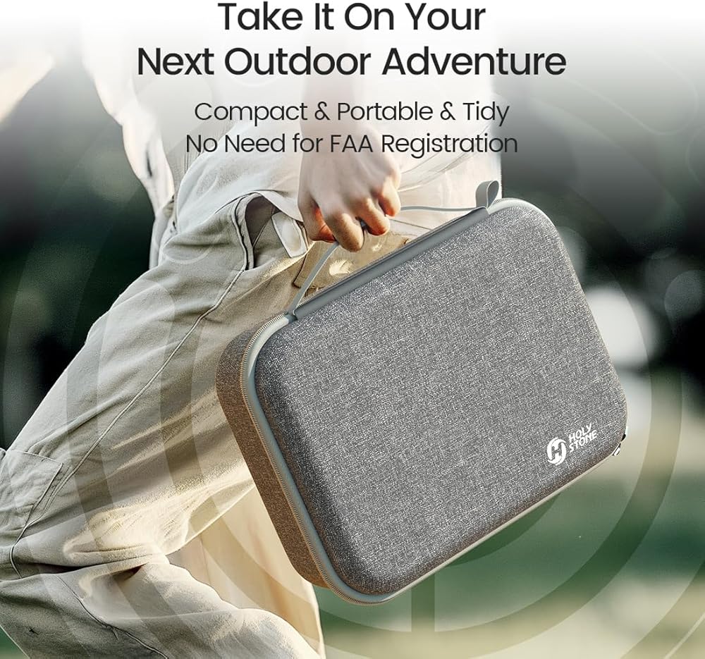 [Lightweight and Compact for Easy Travel] The Holy Stone 4K GPS Camera Drone folds up neatly and comes with a carry case, perfect for taking on your outdoor adventures, whether it's hiking or hitting the beach.