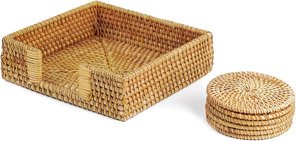 PERFECT FOR ALL – Napkin basket square: perfect choice for luncheon, dinner, cocktail, off-fold napkins; Round woven coasters: perfect for both hot and cold drinks - they have good heat resistance and also absorb the condensation, there is no wetness left behind on the table.