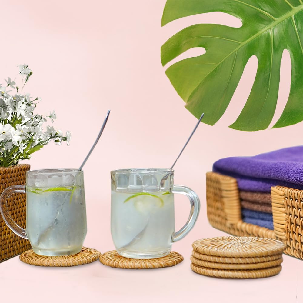 + Rattan coasters: Perfect for both hot and cold drinks – they have good heat resistance and also absorb the condensation, there is no wetness left behind on the table.