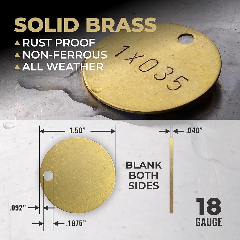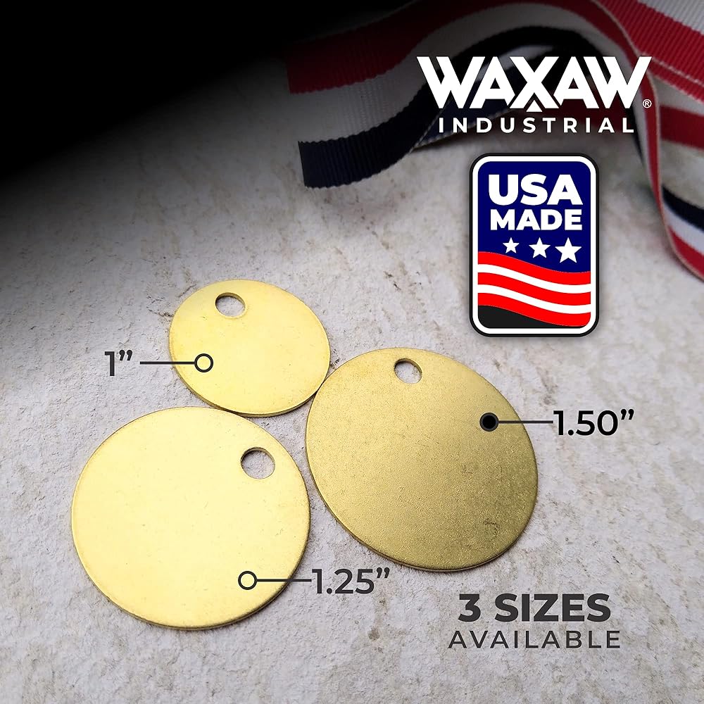 IMPROVE WORKPLACE SAFETY and keep track of equipment with WAXAW Industrial Round Brass Tags. Label wiring, keyrings and tools with engravable blank chits that withstand the effects of time and temp.