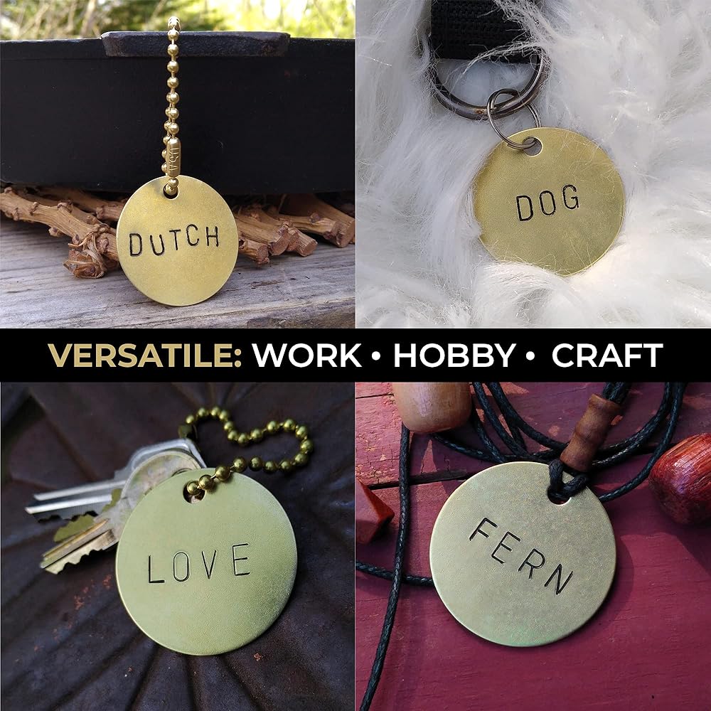 NON-FERROUS metal flat brass blanks won't produce a spark, making them safe to use as valve tags, key tags, pet ID tags and more. Inscribe information easily by metal stamping or with an etching pen.