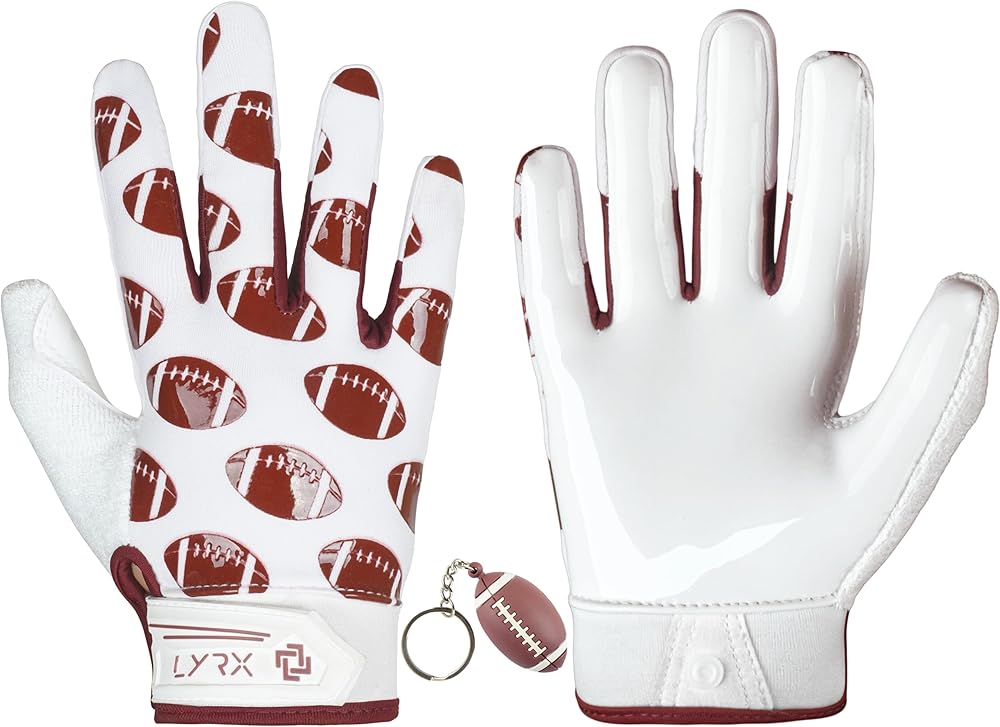 🏈【𝐔𝐋𝐓𝐈𝐌𝐀𝐓𝐄 𝐆𝐑𝐈𝐏】 Exceptional grip football gloves, ensuring a firm hold on the ball Specifically designed with kids in mind, these gloves feature a one-piece tacky silicone palm design for a superior grip, making catching and holding onto footballs both fun and secure. Durable and comfortable, with flexibility allowing kids to feel their catches with precision.