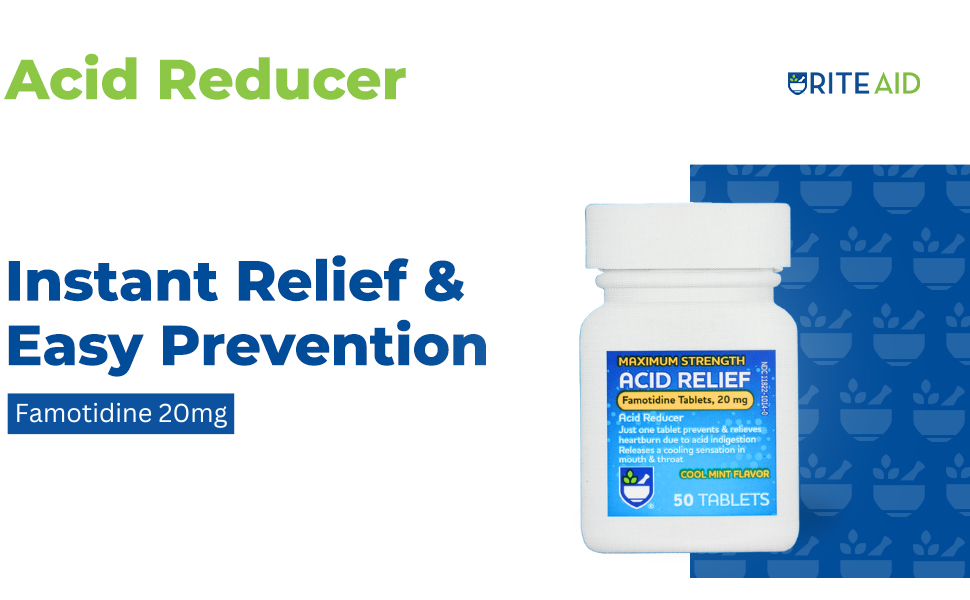 FAMOTIDINE 20 MG: Compare Rite Aid's acid reducer & heartburn medicine to the active ingredient in top national brands. Get all the benefits of this effective heartburn medicine with Rite Aid. Push-through packaging offers easy open and quick antacid dosing.