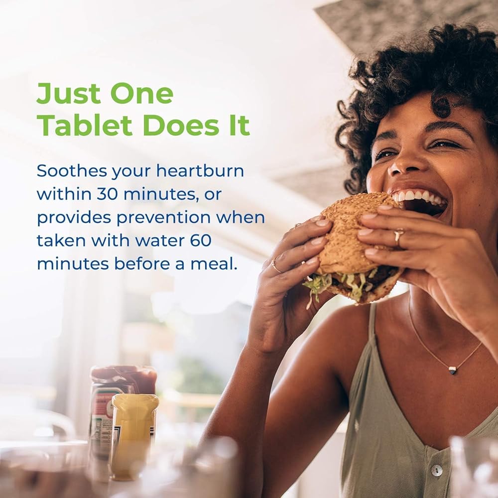 RELIEVE & PREVENT SYMPTOMS: Designed for easy swallowing. To prevent symptoms, swallow 1 tablet with a glass of water 60 minutes before consuming food or beverages that cause heartburn.