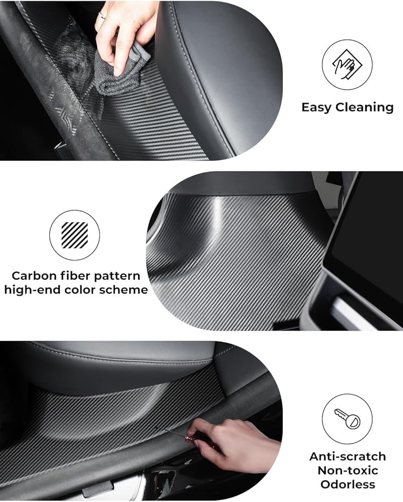【Applicable Models】This product is only fit for Tesla Model 3 Highland, not other Models. It is the latest 2024 Accessory, using ABS carbon fiber design thickness less than 2 mm does not affect the door switch, non-toxic and odorless, strong wear resistance, high stability, easy installation and unloading, does not hurt the car suitable for all kinds of weather use