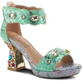 L'Artiste Jewell Women's Leather Sandals with Crystals, Strap, and Jewel Heel