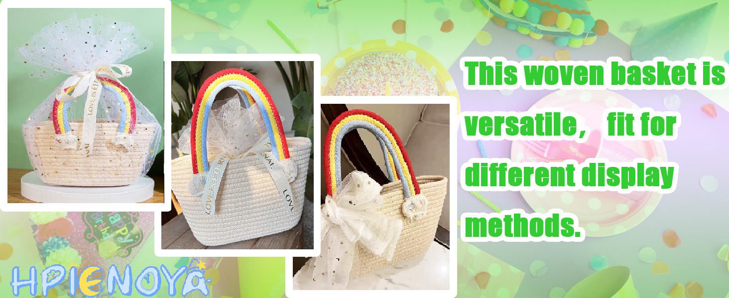 🌈【Perfect Gift Choice】Our small woven basket comes with a gift tulle netting and ribbon without wasting time to buy bag and ribbon. It is the best choice for Graduation Gift, baby shower, Easter and Christmas. The cute rainbow handbag itself is also a great gift .
