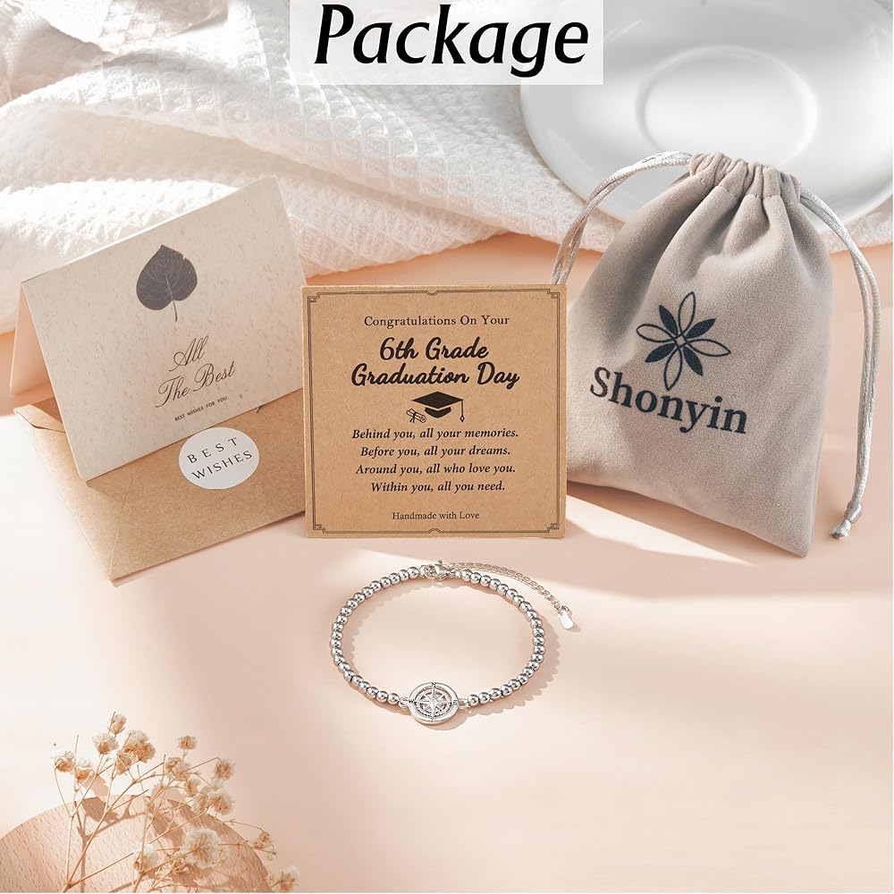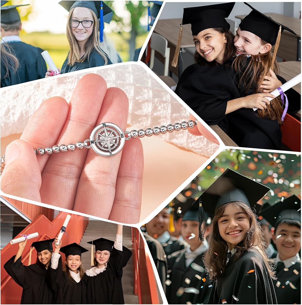 [ 5th Grad Graduation Gifts ] Graduation symbolizes preparing to face new challenges and opportunities. Presenting her with a Compass bracelet as a gift for her participation in the graduation ceremony, reminding her that as she encounters new challenges and opportunities, may she maintain Faith and approach new beginnings with confidence