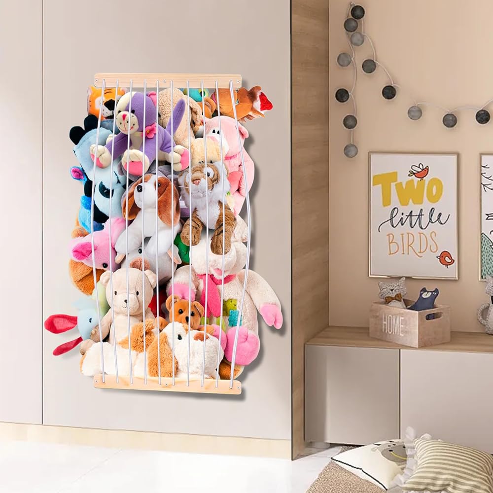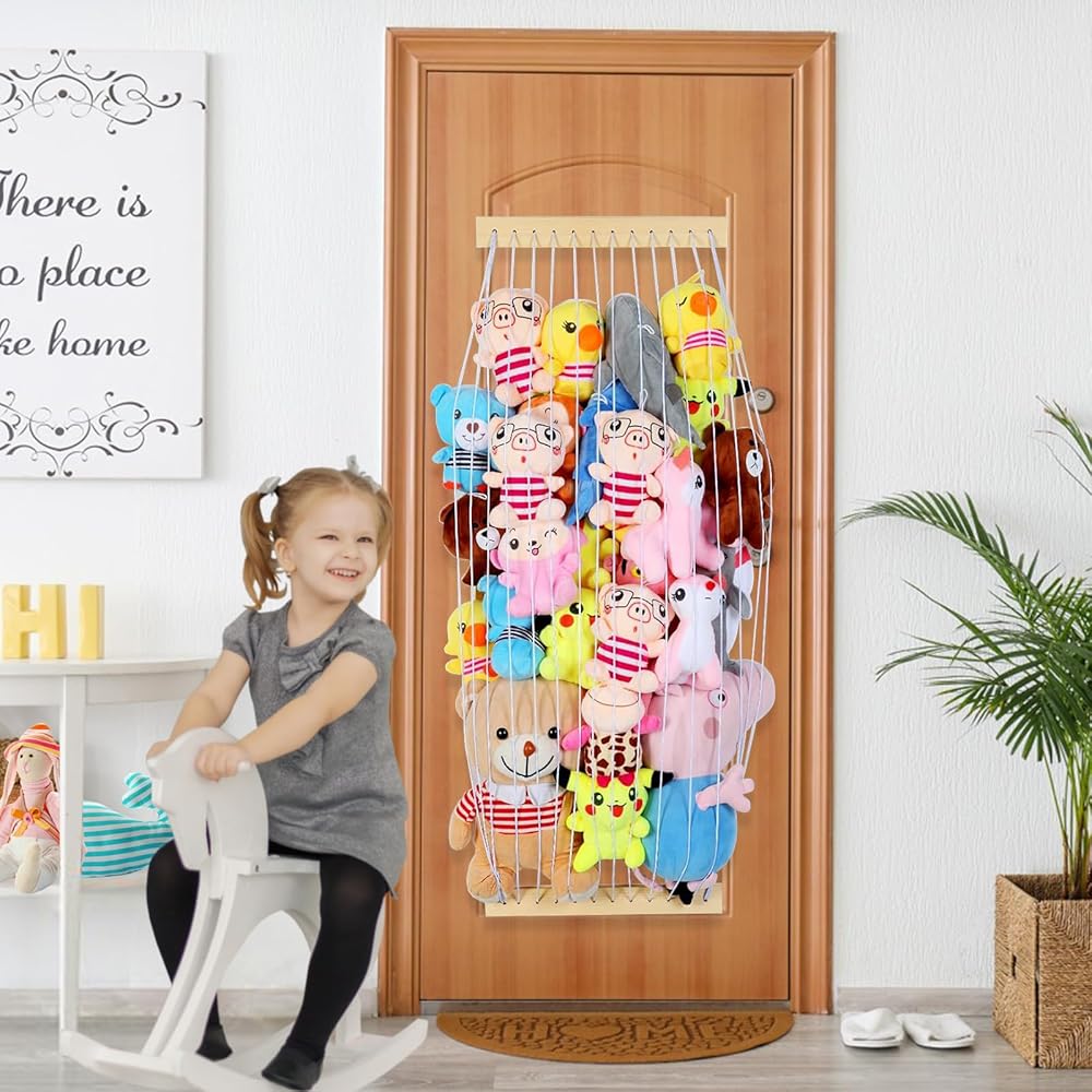Easy and Flexible Installation: Our stuffed animal net is adjustable to fit any corner or door. Simply follow intuitive and straightforward instructions and mount the soft wooden brackets anywhere on a wall or on your wooden door to create more storage space for stuffed animals.