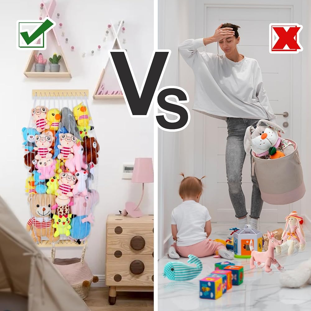 This toy net for stuffed animals is perfect for bedrooms, playrooms that needs a little extra storage boost. Use it as a decorative feature, a stuffed animal organizer, or simply a convenient way to store dolls, teddy bears, and other plushies. Our stuffed animal holder can display your child's favorite plushies and keep them clean and organized.