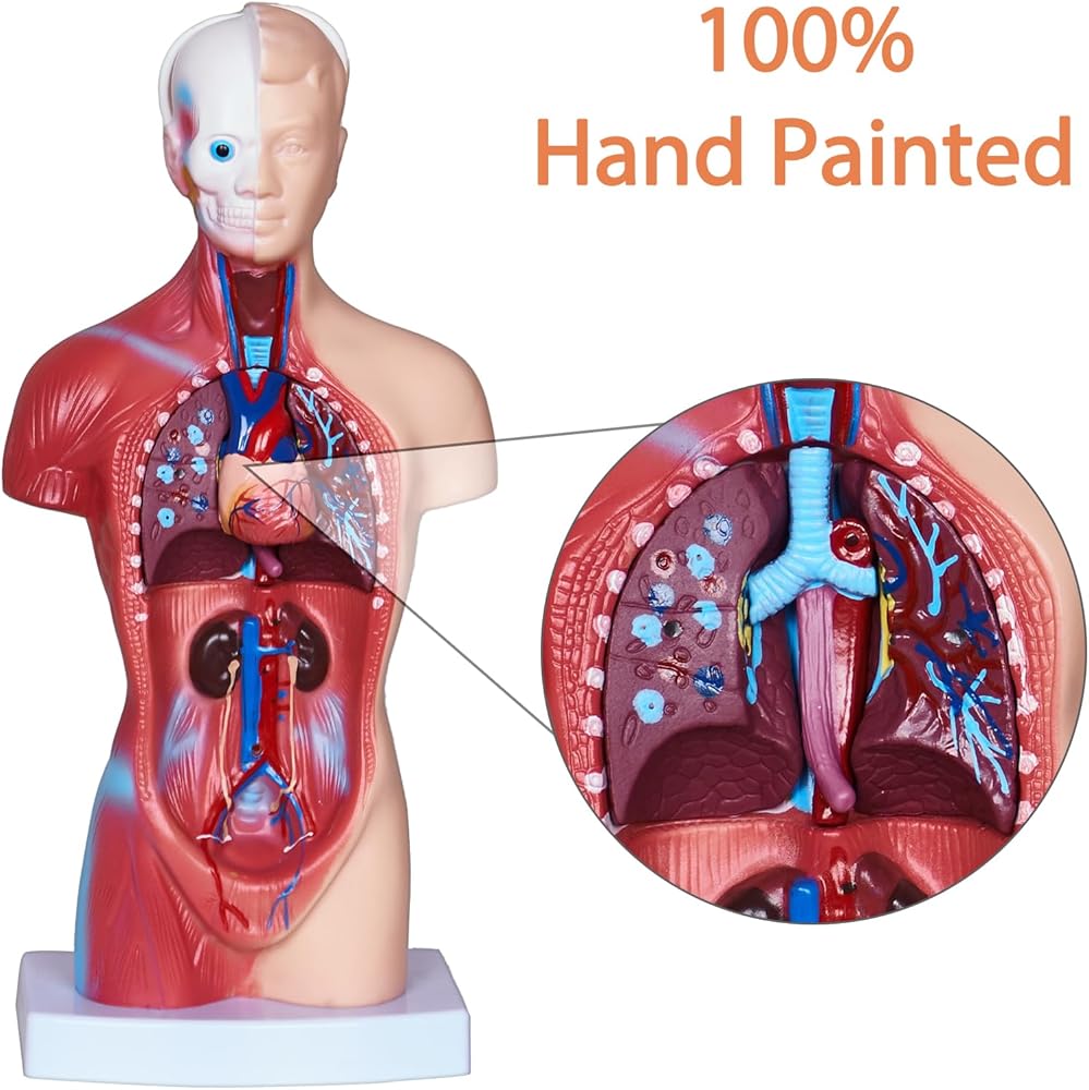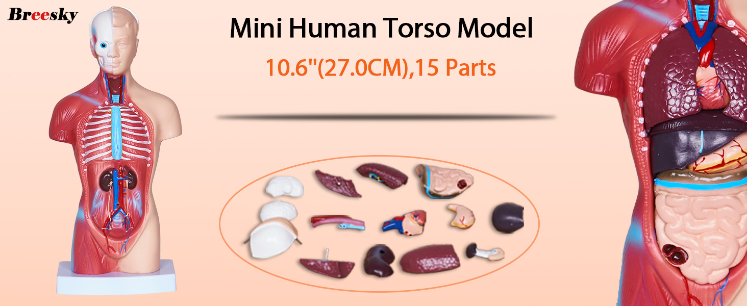 3.Portable Size : Our Human Torso Body Anatomy Model is 10.6inches in height to fit in your pocket and take to class. It also makes a nice ornament to display on a shelf or in a cabinet.