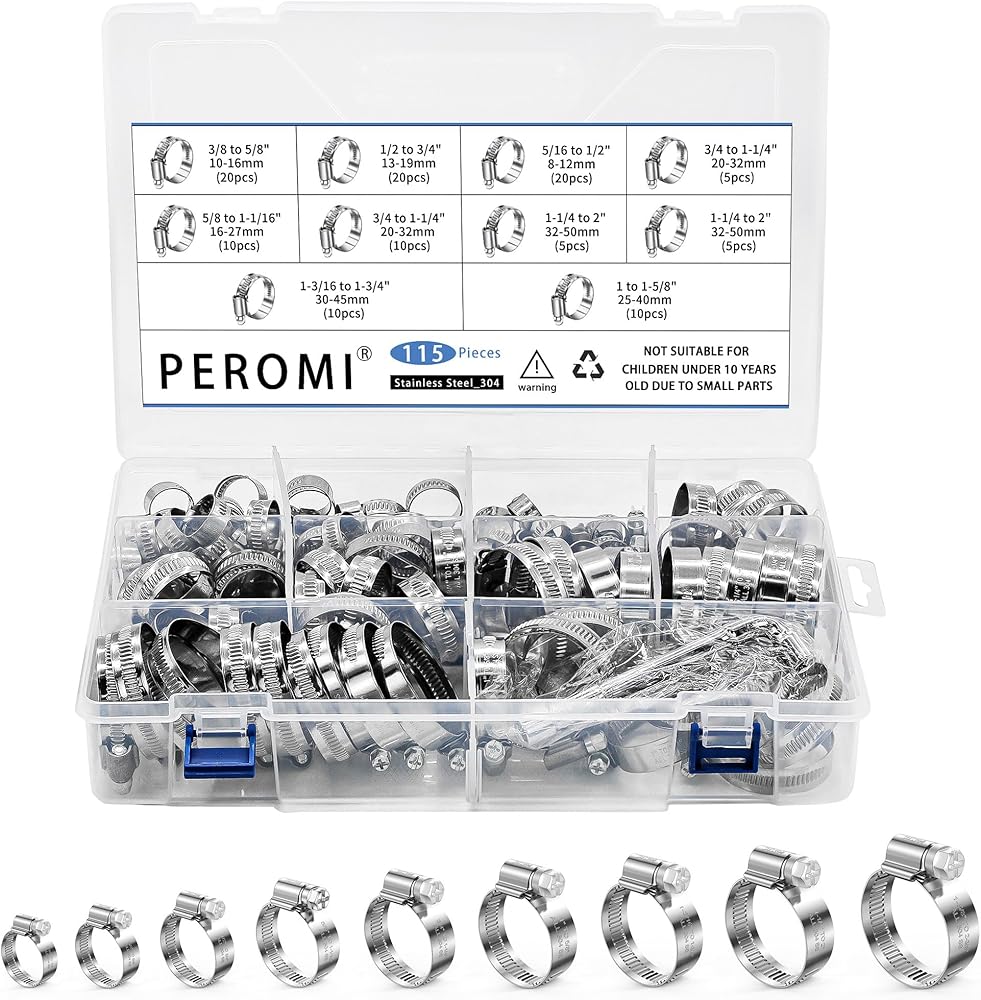 115pcs Heavy Duty Hose Clamps Set, 304 Stainless Steel Worm Gear Drive Hose Clamp Metal Fuel Line Pipe Clamp for Plumbing, Automotive And Mechanical Application