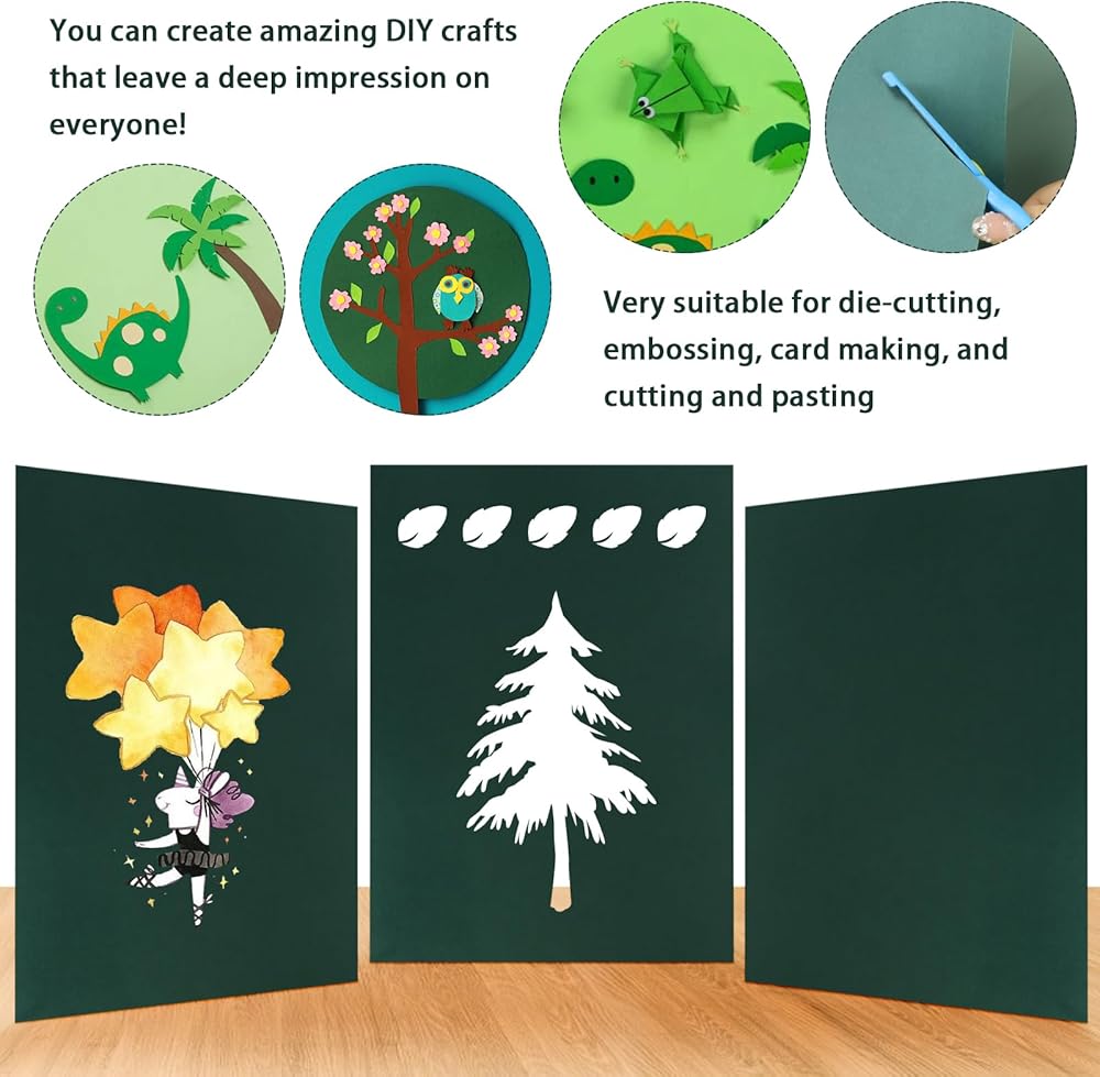 Multiple uses: These green craft cardstocks are perfect for die-cutting, embossing, Ideal for postcards, greeting cards, report cards, menus, DIY paper crafts, scrapbooking, wall pictures, and more.