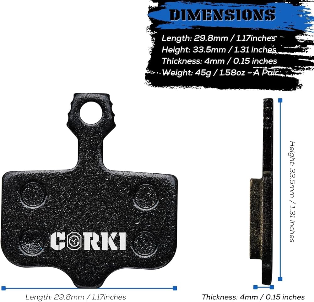 𝐒𝐮𝐩𝐞𝐫𝐢𝐨𝐫 𝐁𝐫𝐚𝐤𝐢𝐧𝐠 𝐏𝐞𝐫𝐟𝐨𝐫𝐦𝐚𝐧𝐜𝐞 𝐚𝐧𝐝 𝐋𝐨𝐧𝐠𝐞𝐯𝐢𝐭𝐲 - Experience enhanced braking power and extended pad life with Corki Cycles disc brake pads. Meticulously engineered, these pads deliver consistent and reliable stopping power across various SRAM and Avid models, ensuring a reliable ride every time.