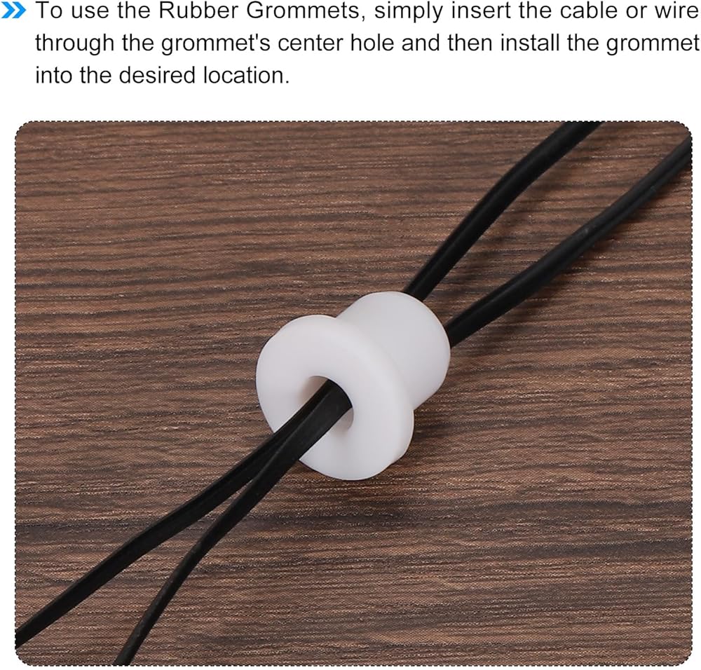 To use the Rubber Grommets, simply insert the cable or wire through the grommet's center hole and then install the grommet into the desired location.