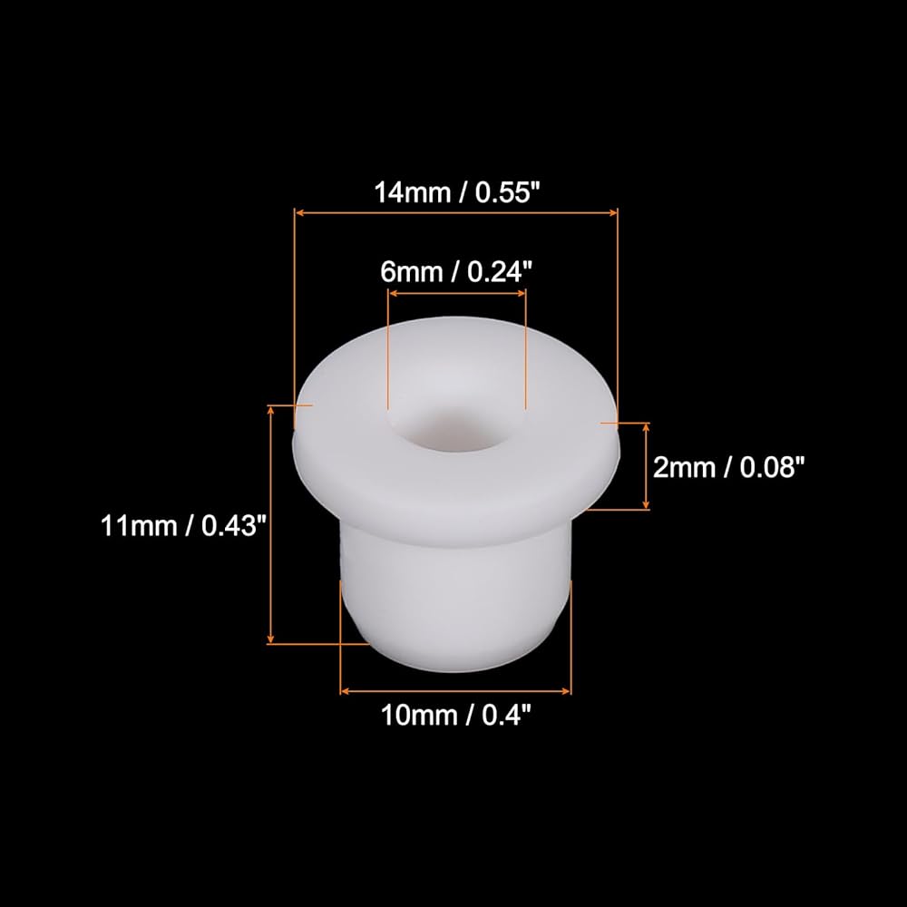 Mounting Hole Dia.: 24mm/0.94-inch; Inner Diameter: 14mm/0.55-inch; Height: 14mm/0.55-inch; Head Thickness: 4mm/0.16-inch; In the package of: 4 x Rubber Grommet
